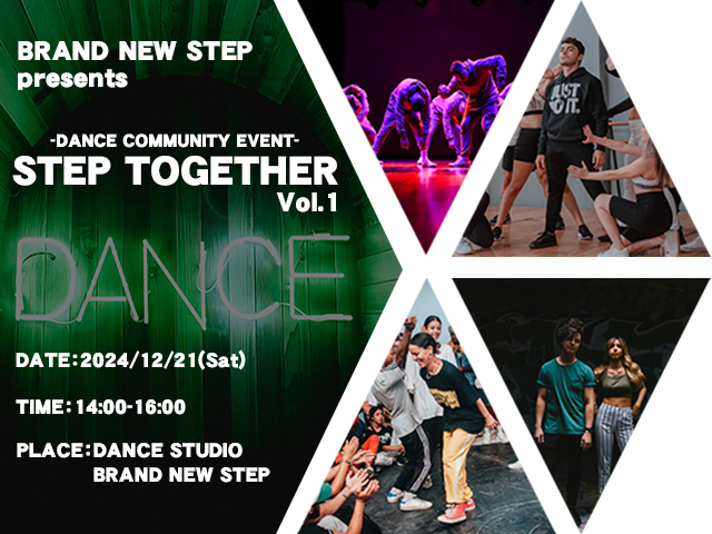 多角形にそれぞれ画像をトリミングし、スタイリッシュなレイアウトを意識。左側にイベントの詳細を白文字に黒の影の背景で可読性を上げ